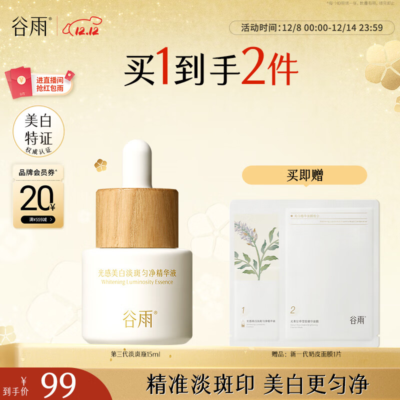 包邮 谷雨第三代淡斑瓶15ml美白精华淡化痘印熬夜补水提亮化妆品